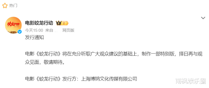看得出来,《蛟龙行径》着实是绷不住,铁心脸面径直官宣撤档。