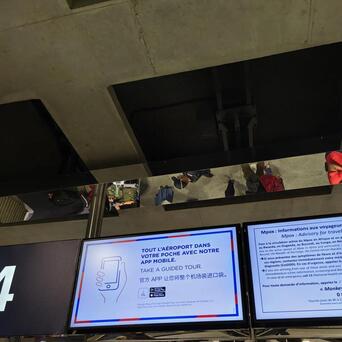 法国巴黎戴高乐机场,我好多年前来的手艺就依然是中英法三语了,咫尺依然是。