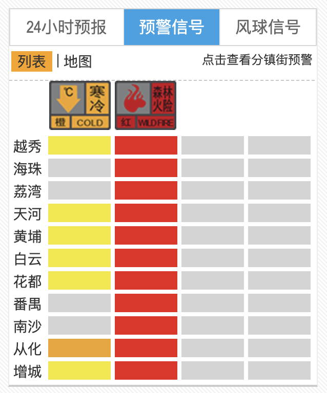 据@广州天气,广州已发布本年首个阴凉预警。适度1月9日17:30,广州越秀、河汉、黄埔、白云、花王人、增城已发布阴凉黄色预警,从化升级至阴凉橙色预警。
