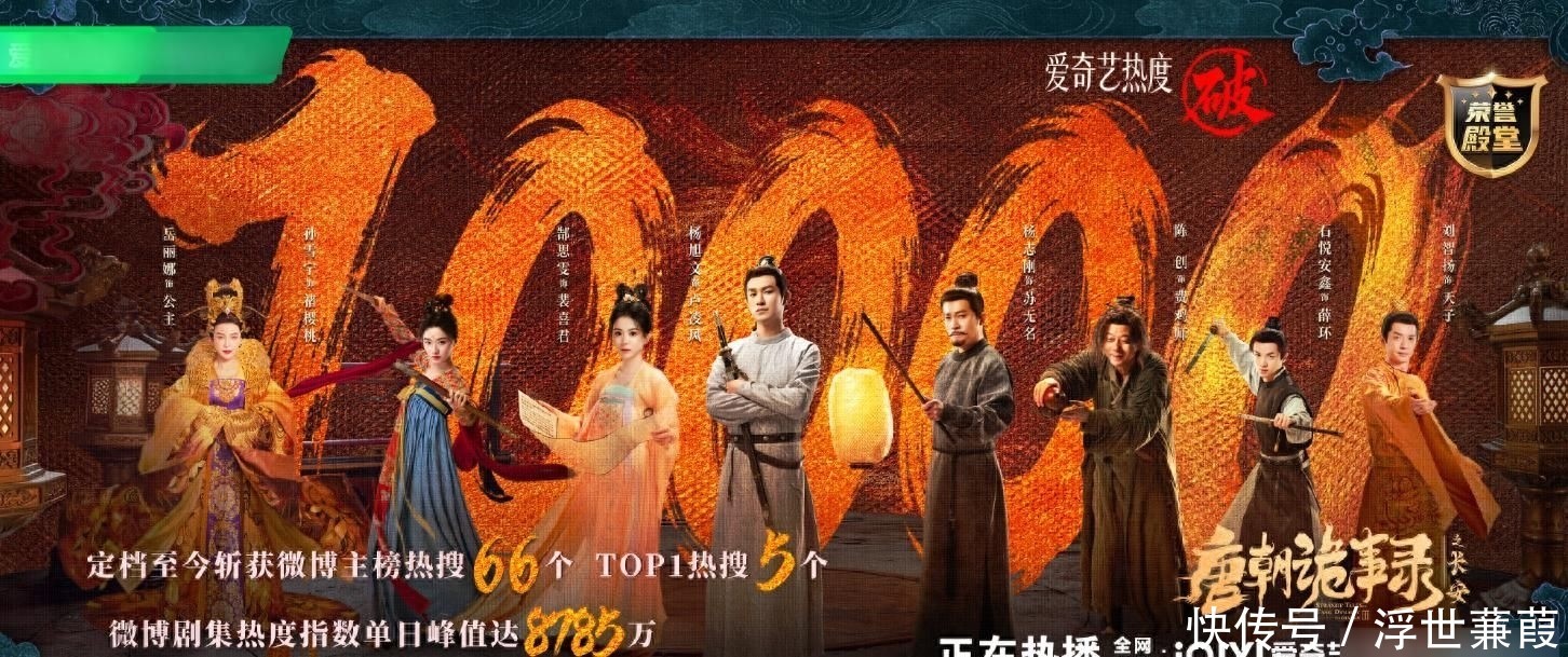 就在昨晚,《唐朝诡事录3》在爱奇艺平台的热度值肃穆摧毁10000大关,成为本年该平台第五部收场“破万”建立的剧集,强势登顶热点榜单!