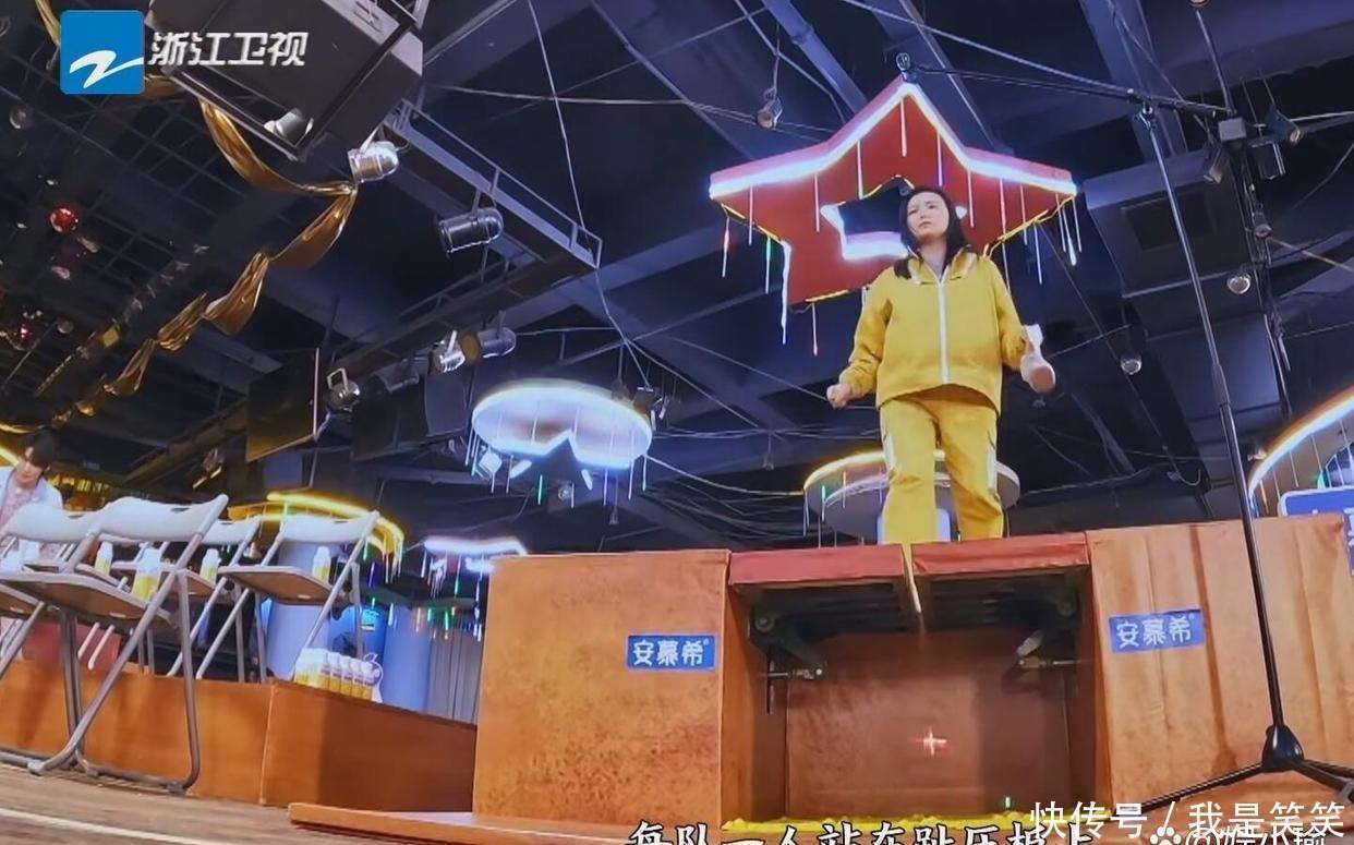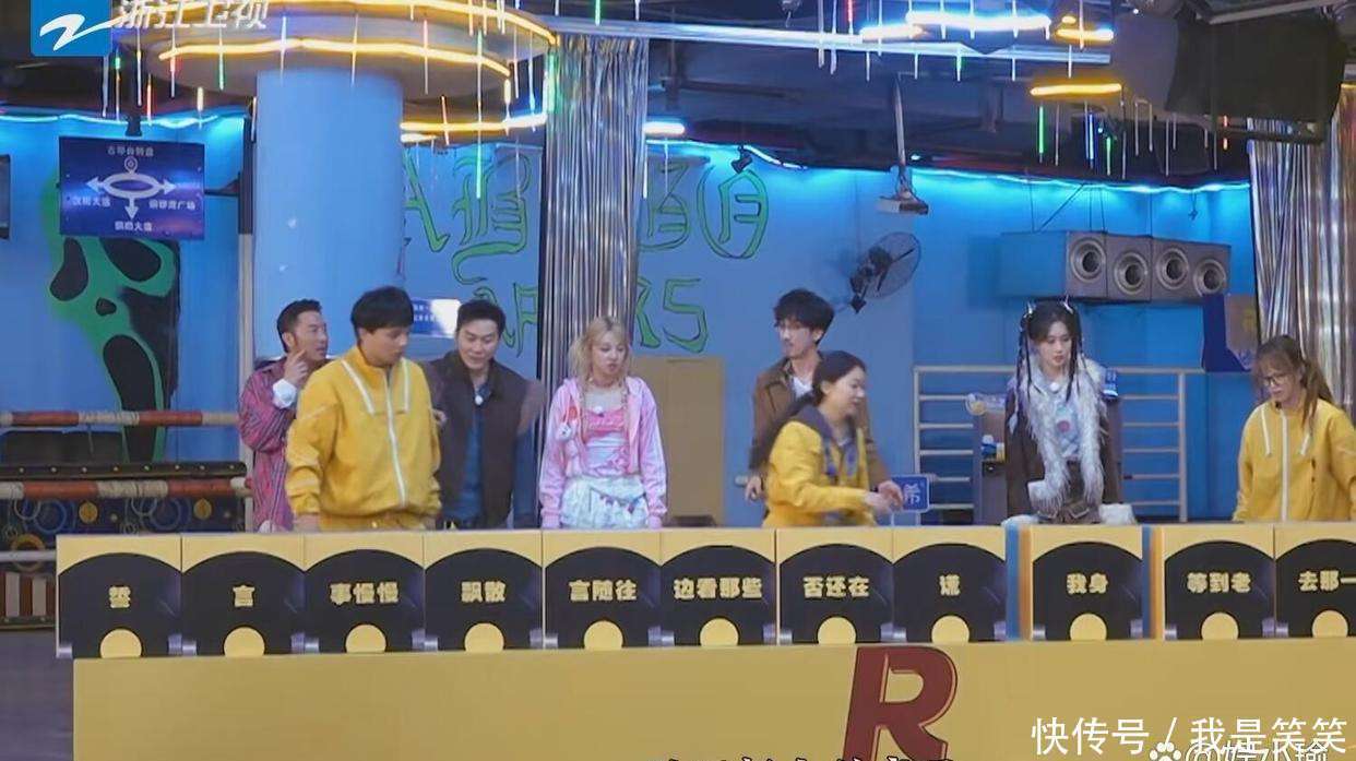 此次的游戏叫“我爱记歌词”。国法是这样的:每队派一个东谈主站在趾压板上,回身戴上耳机,另外三东谈主认真在所在里找歌词积木,在法例时辰内拼出他们认为正确的歌词,然后趾压板上的那位认真唱,唱对了就得分,唱错了就得接纳趾压板的“马杀鸡”。
