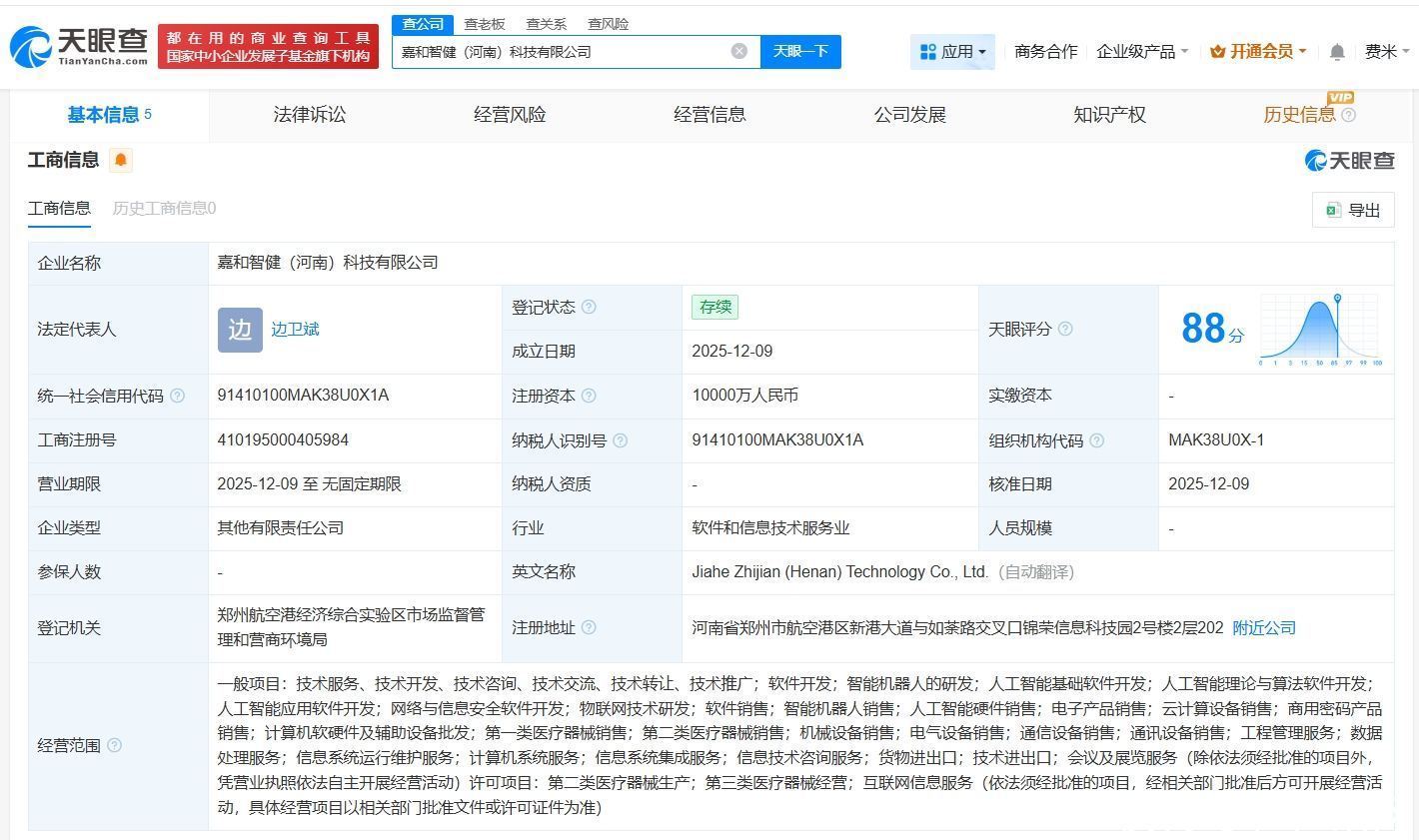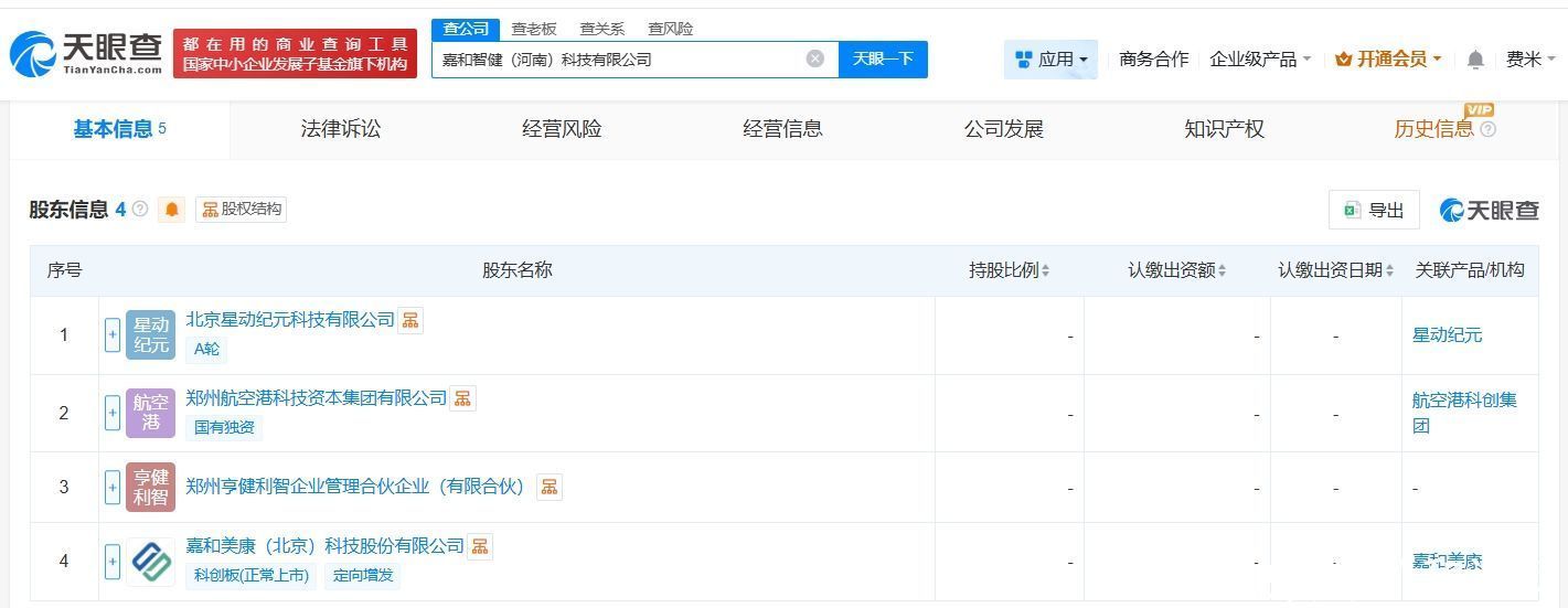 天眼查App披露,近日,嘉和智健(河南)科技有限公司建树开yun体育网,法定代表东说念主为边卫斌,注册本钱1亿东说念主民币,认识限制包括智能机器东说念主的研发、东说念主工智能基础软件开辟、东说念主工智能表面与算法软件开辟等,由北京星动纪元科技有限公司、郑州航空港科技本钱集团有限公司、郑州亨健利智企业科罚合资企业(有限合资)、嘉和好意思康(688246)共同捏股。